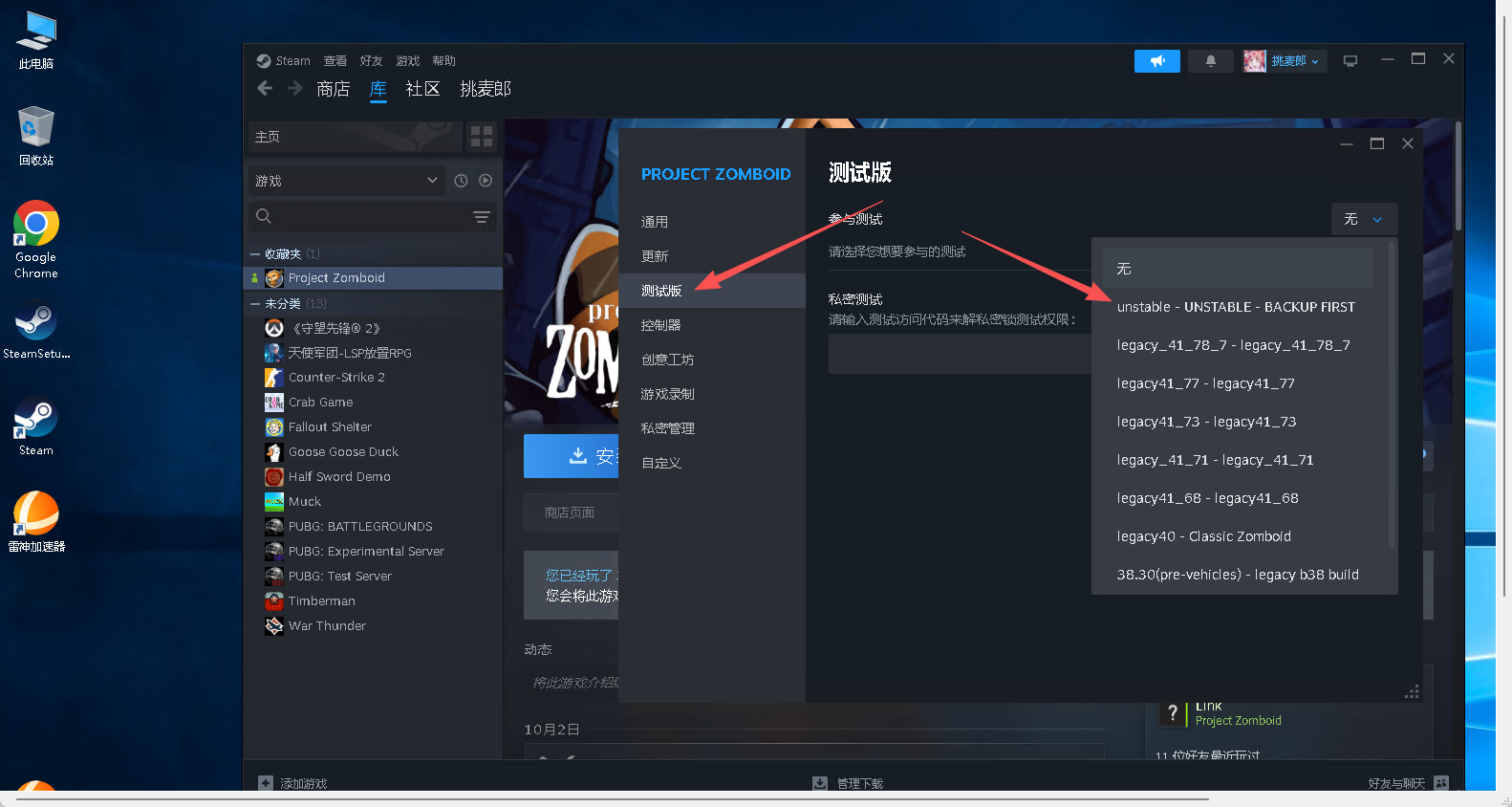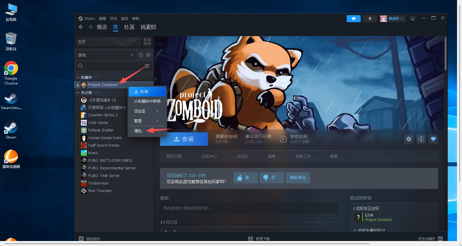 更新完成后登录你带有僵尸毁灭工程游戏的steam账号