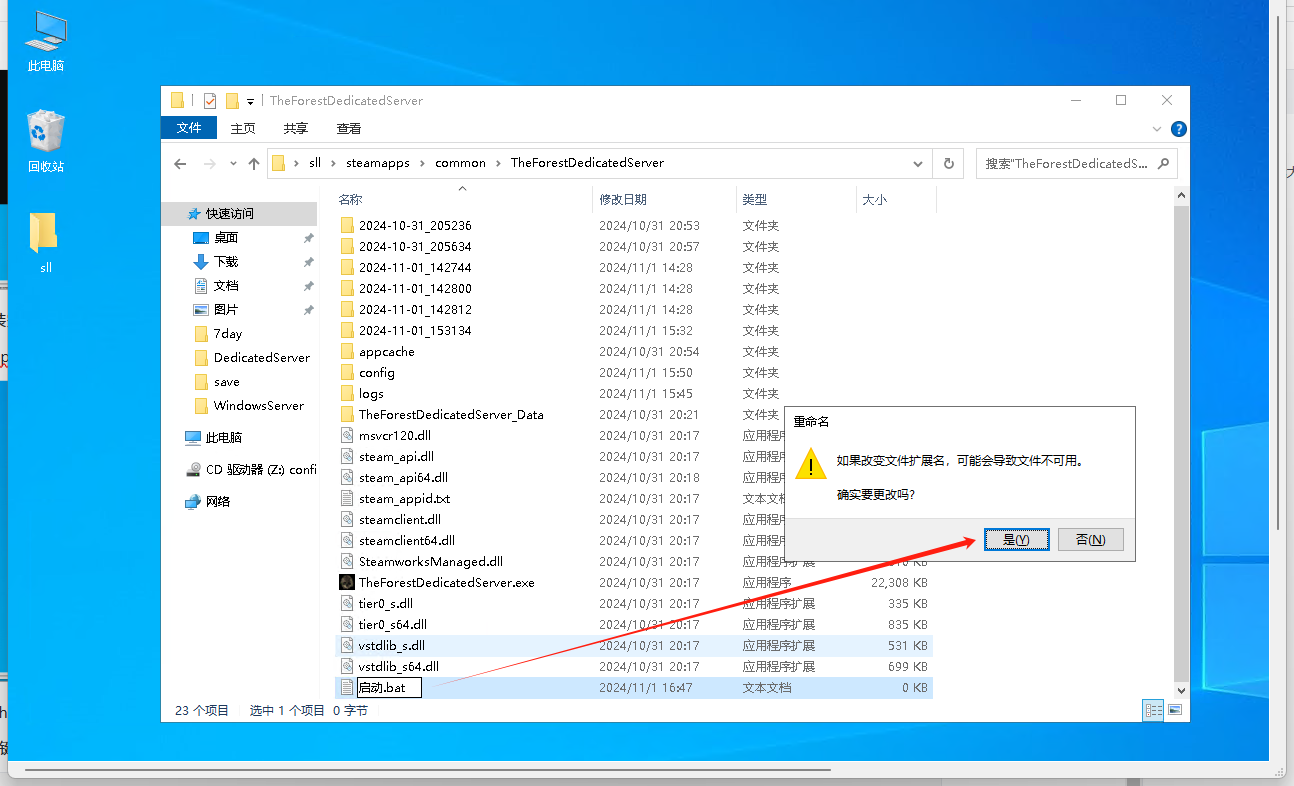 11、回到服务器根目录(TheForestDedicatedServer)中