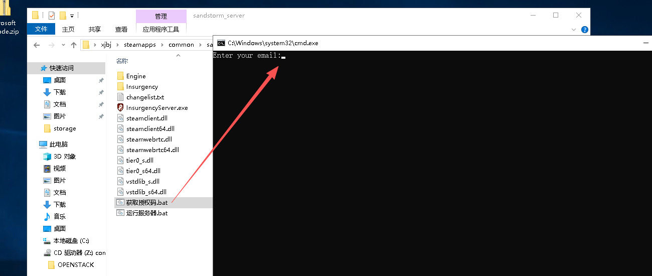 在你的叛乱服务器根目录【sandstorm_server】脚本中创建一个新的文本文档,将其重命名为获取授权码.bat