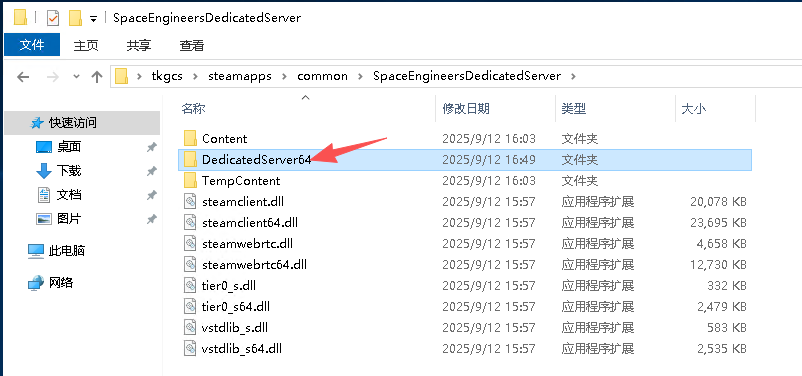 10、再从SpaceEngineersDedicatedServer文件夹中打开DedicatedServer64文件夹