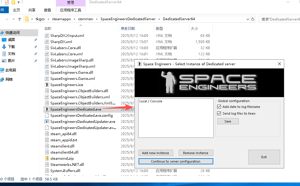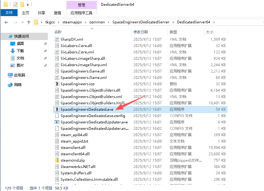 在DedicatedServer64文件夹中找到SpaceEngineersDedicated.exe文件