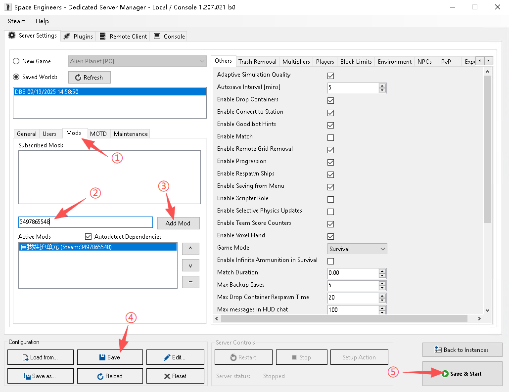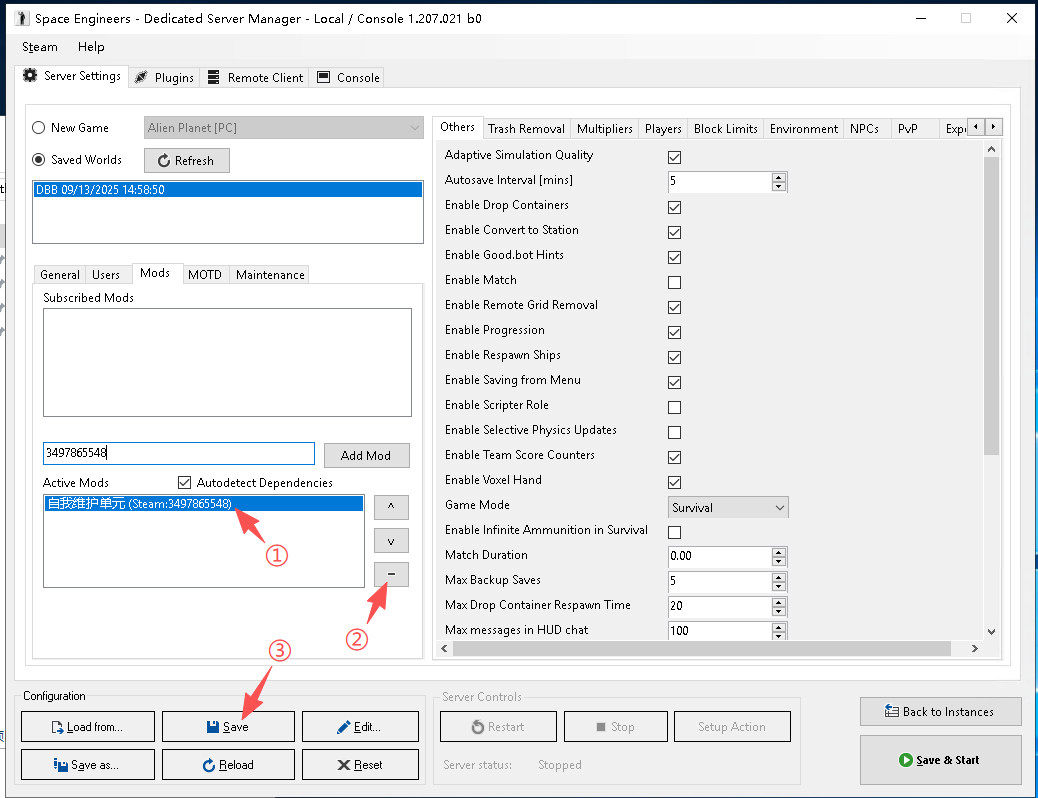 将你想玩的模组ID填到服务器的后台