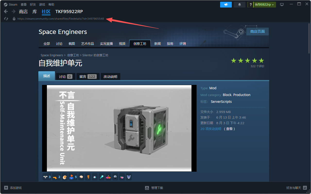 首先获取模组的ID。模组ID在模组订阅页面的上方链接中有显示,如下图👇
