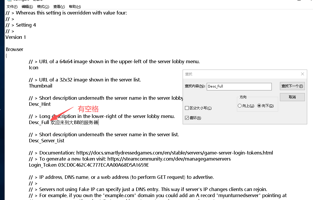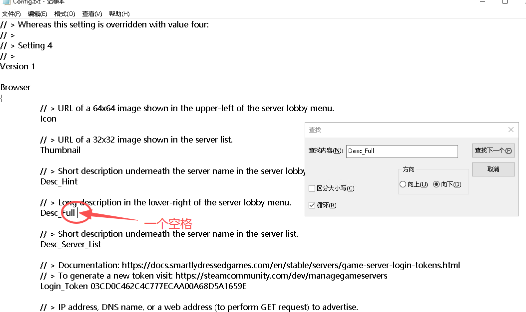 在Config.txt文件中使用查找功能(Ctrl+F)查找参数Desc_Full(参数可以往下看)