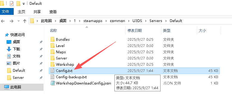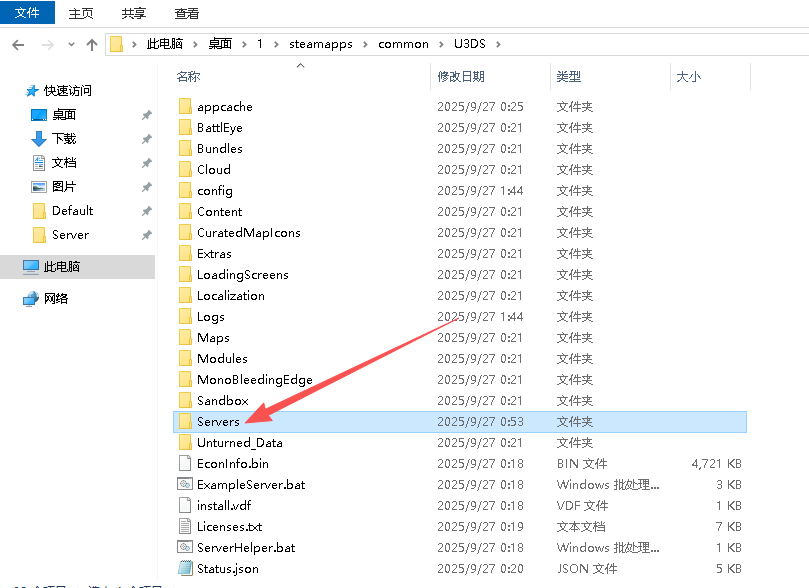 在你搭建的未转变者专用服务器根目录U3DS文件中根据一下顺序打开Default文件夹