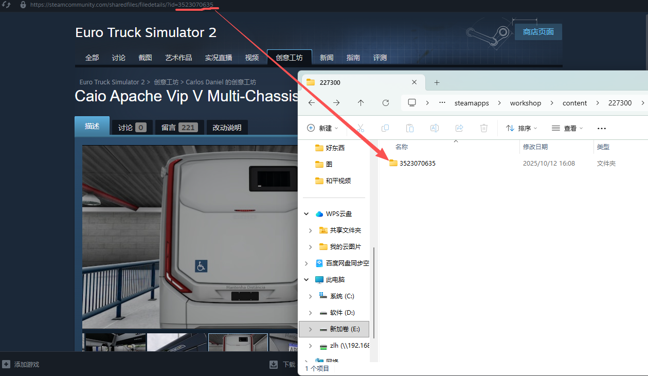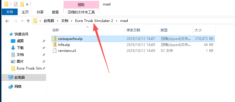 粘贴到Euro Truck Simulator 2文件夹里的mod文件夹内