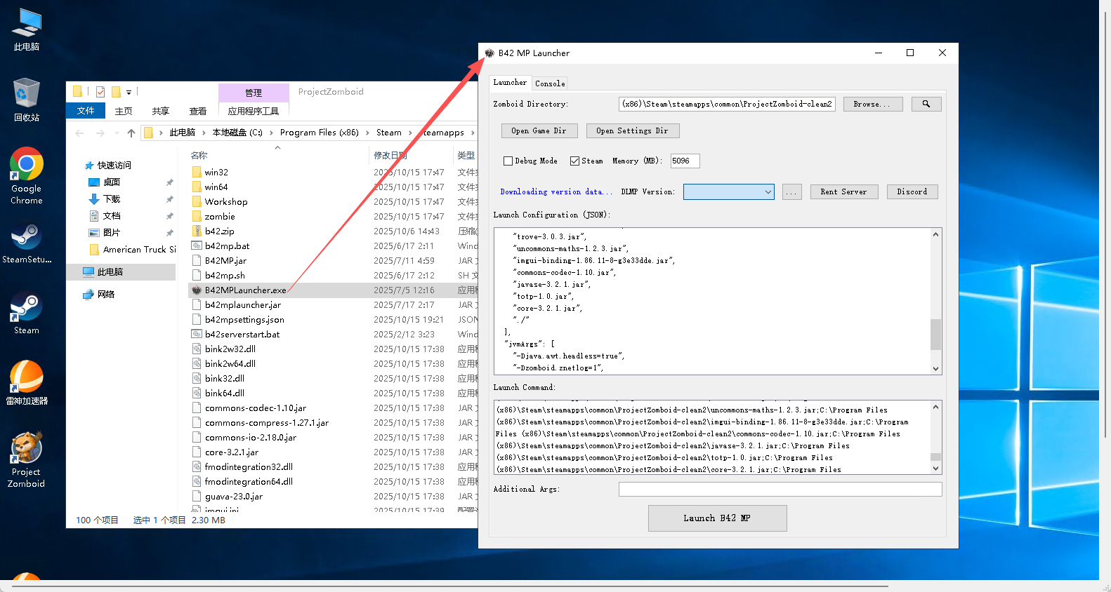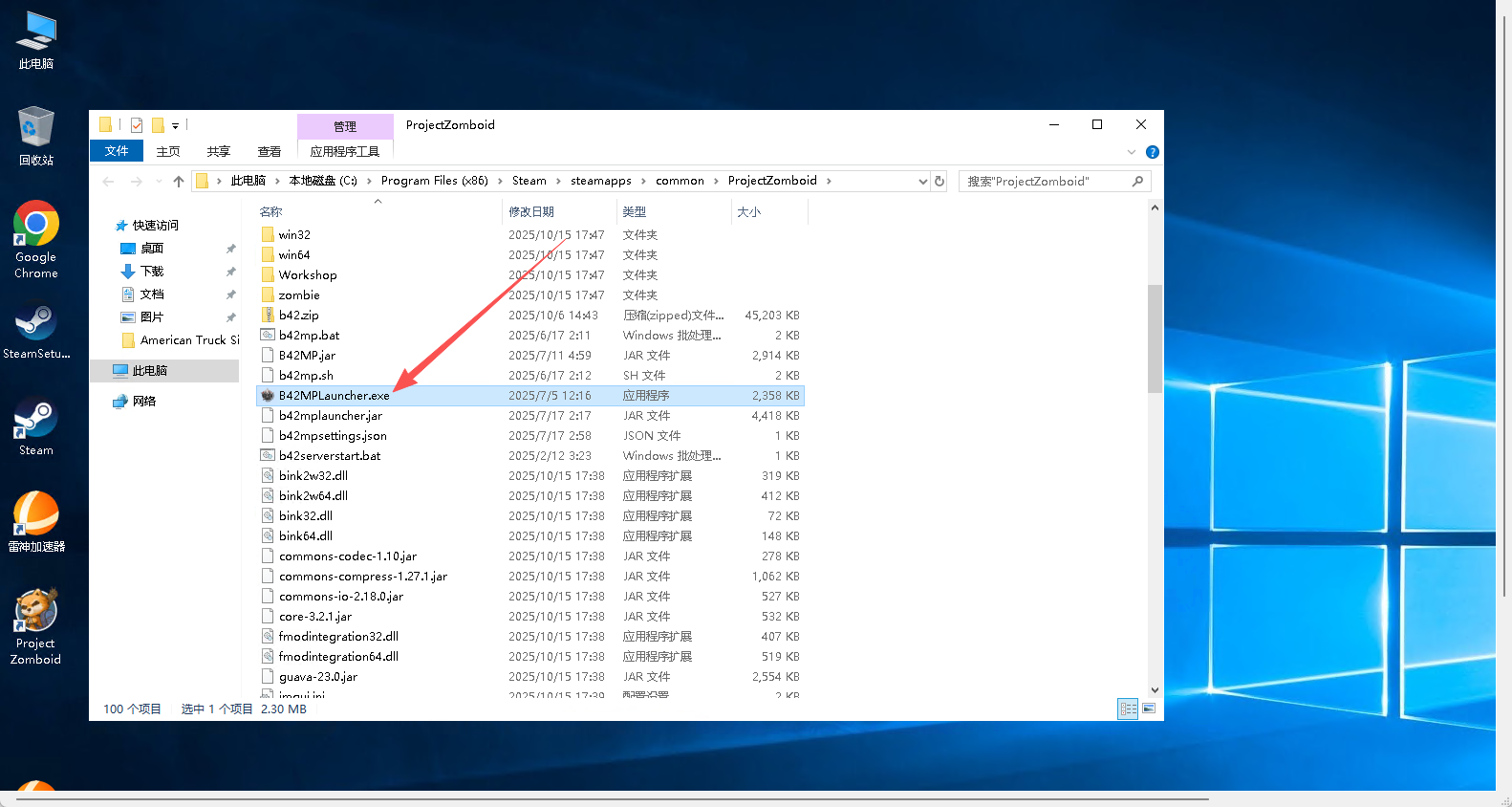 在游戏根目录中找到B42MPLauncher.exe文件(需要解压联机模组才会有)