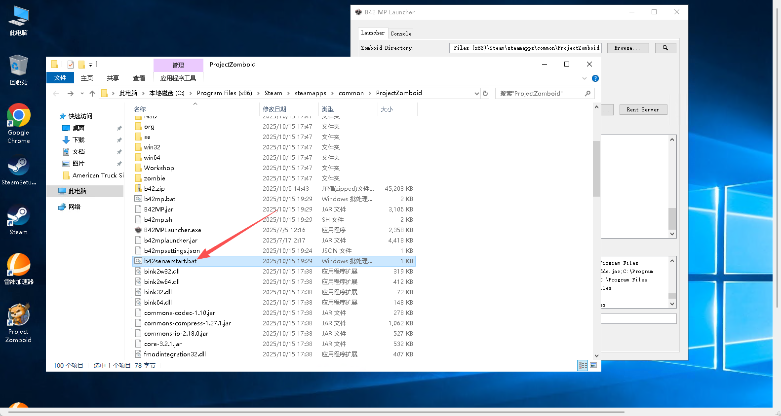 在游戏根目录中找到b42serverstart.bat文件来运行b42服务器