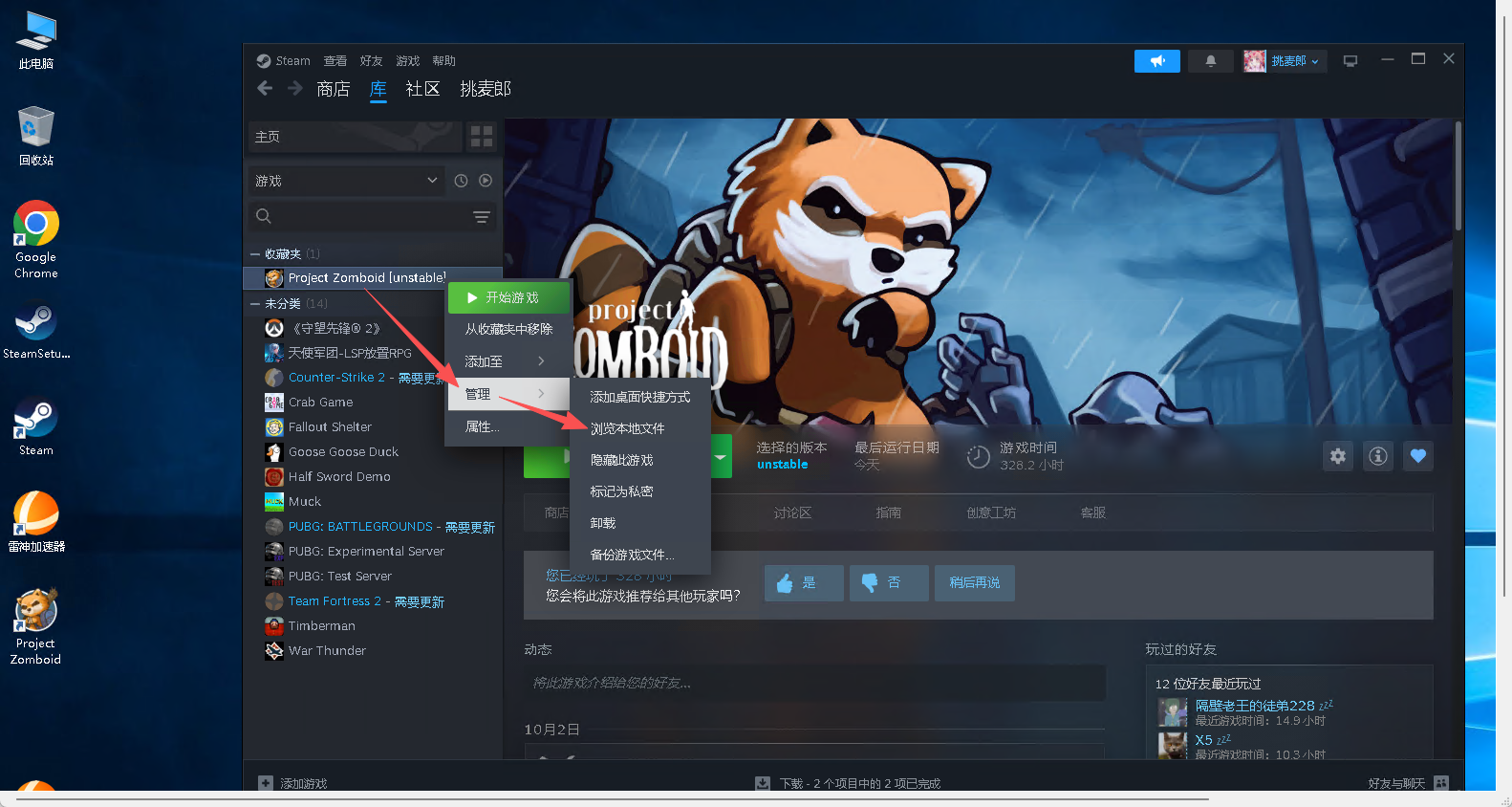 等待游戏安装完成,右键游戏➡鼠标移至管理➡选择浏览本地文件