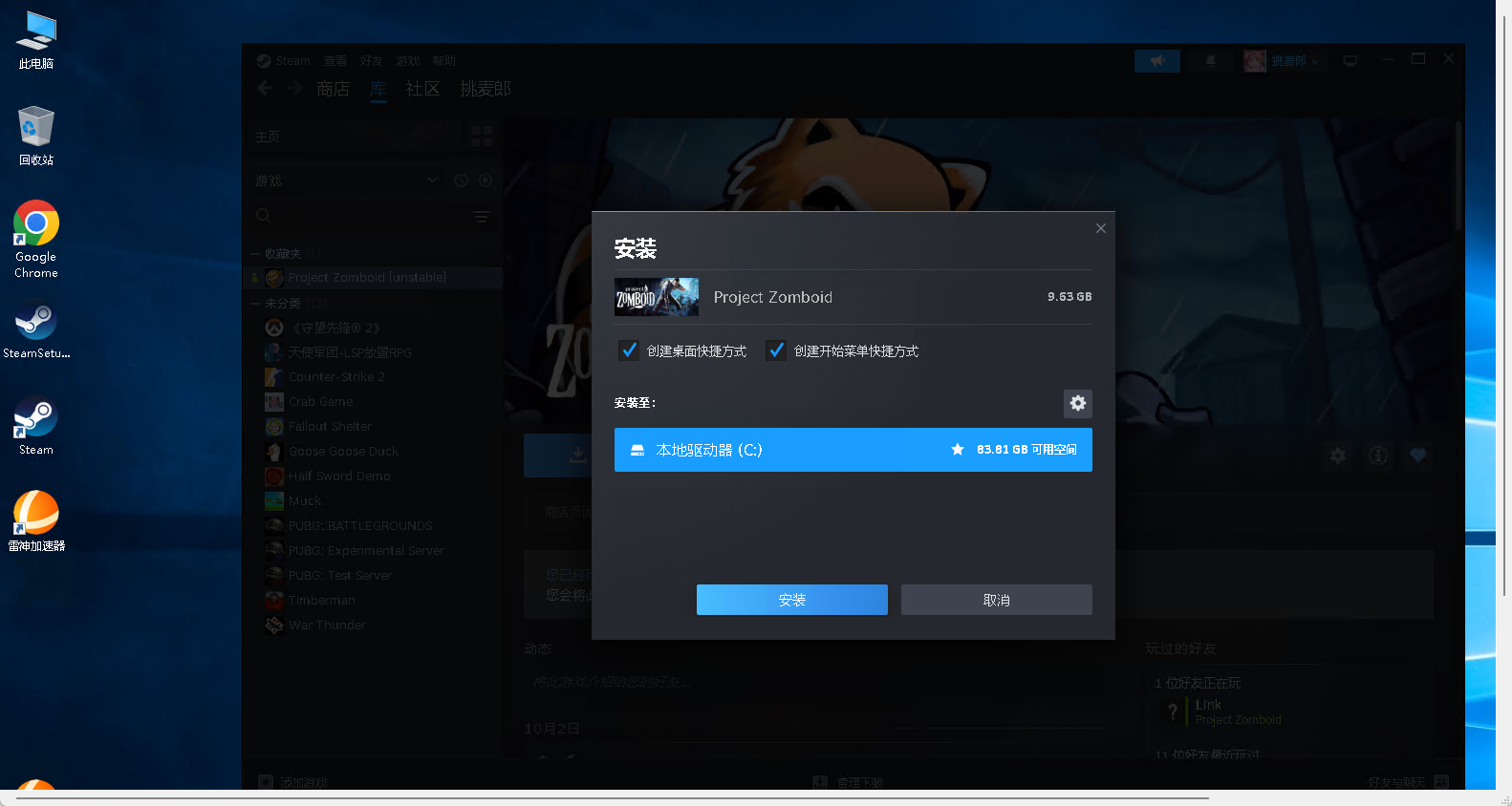 更新完成后登录你带有僵尸毁灭工程游戏的steam账号