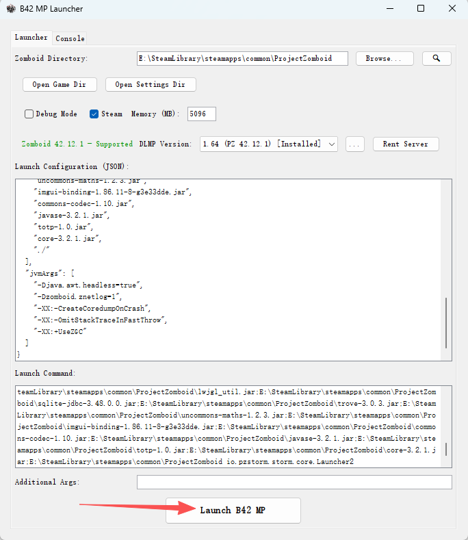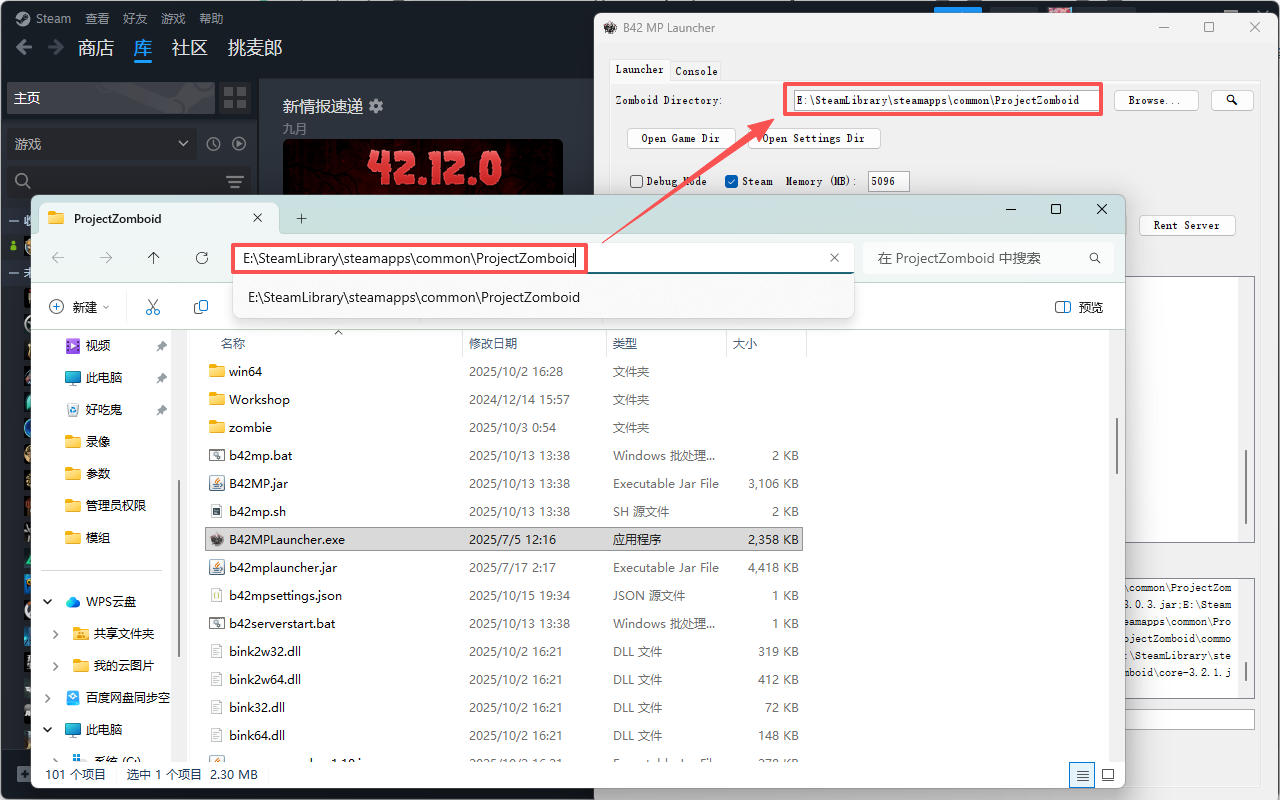 6、将你的游戏根目录路径修改到联机模组的Zomboid Directory处