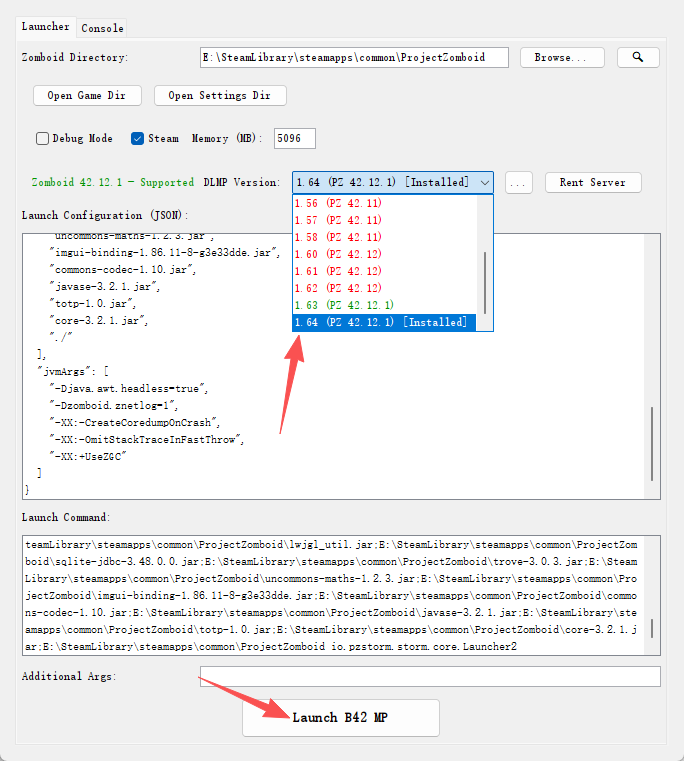 7、选择最新的版本,点击Launch B42 MP进行下载