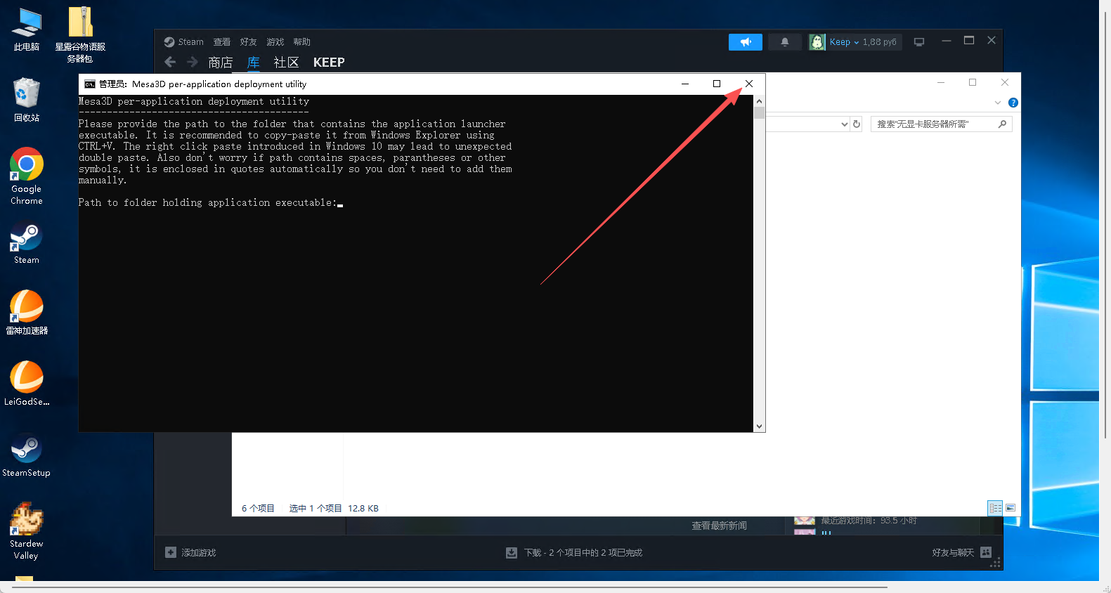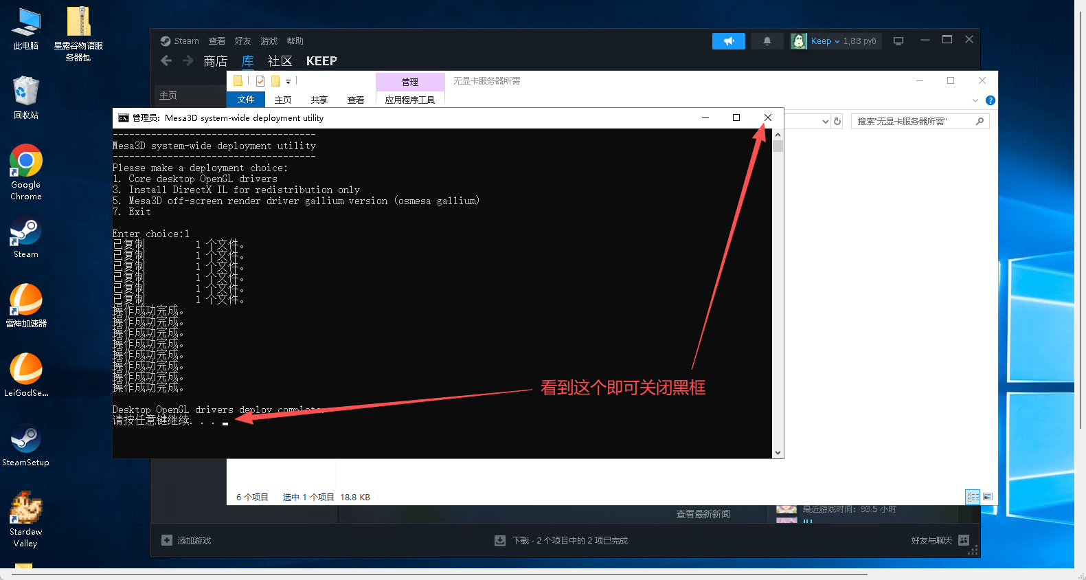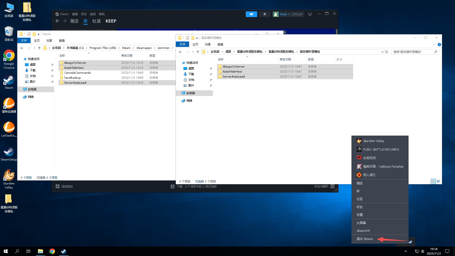 在运行服务器之前我们需要先关闭你的steam平台(退出账号也可以,这是为了避免服务器运行了你的游戏导致你无法使用)