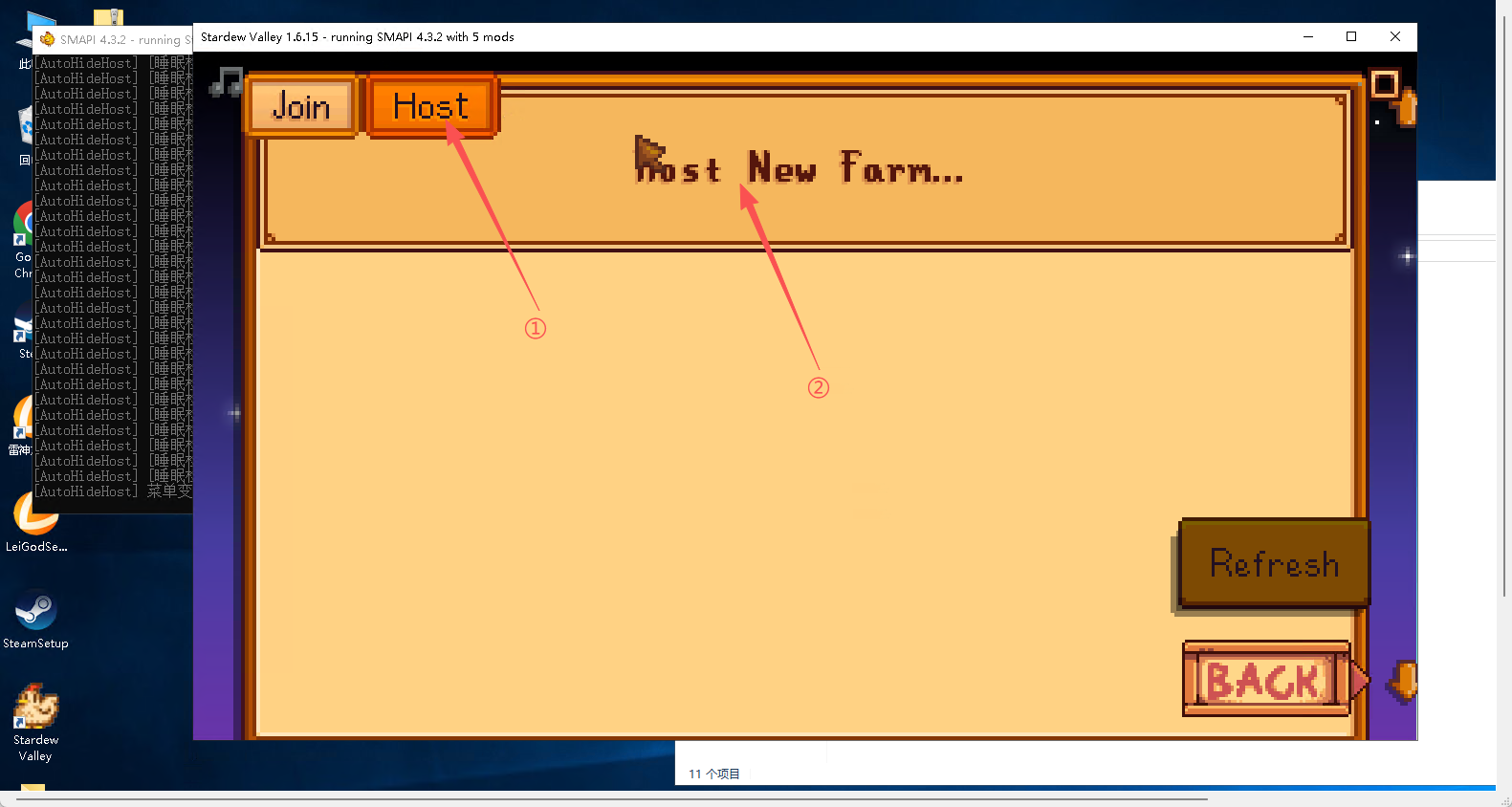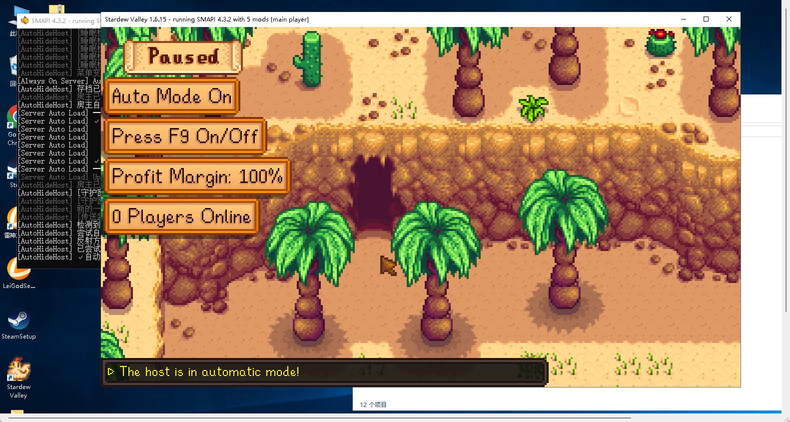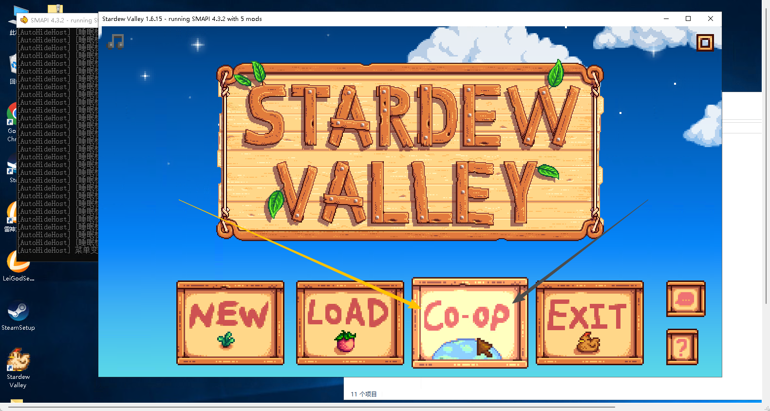 双击StardewModdingAPI文件运行星露谷服务器就会出现一个跟客户端一样的窗口(这有可能会启用了你的某个存档)