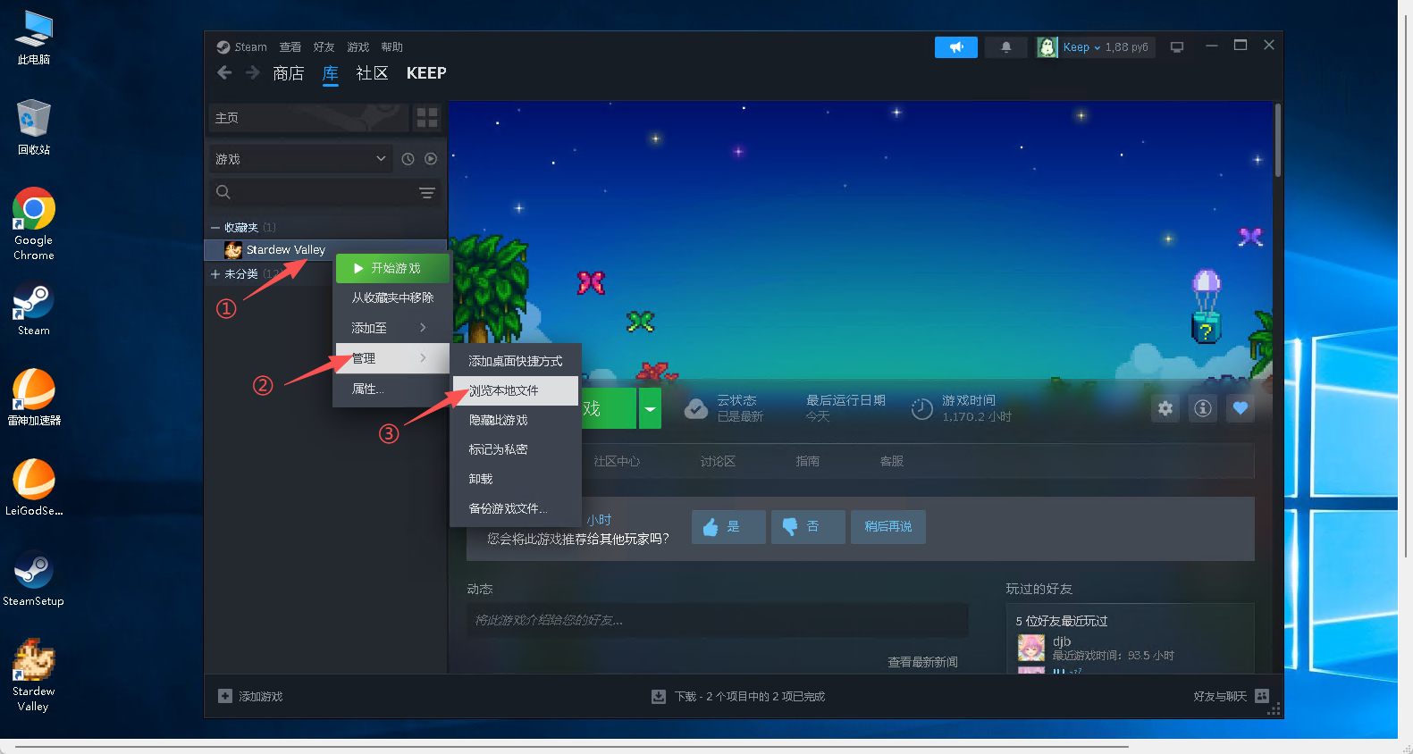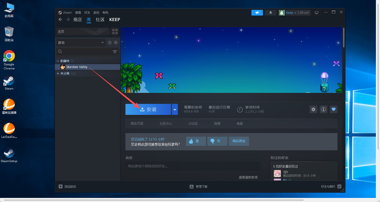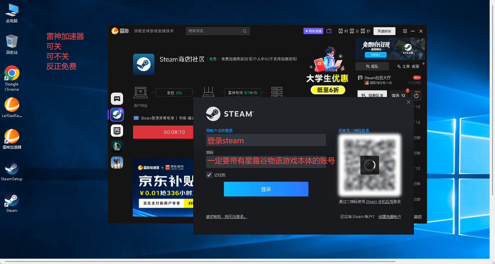 steam更新完成后,需要登陆一个带有星露谷物语游戏本体的账号(雷神加速器可以关也可以不关,免费的)