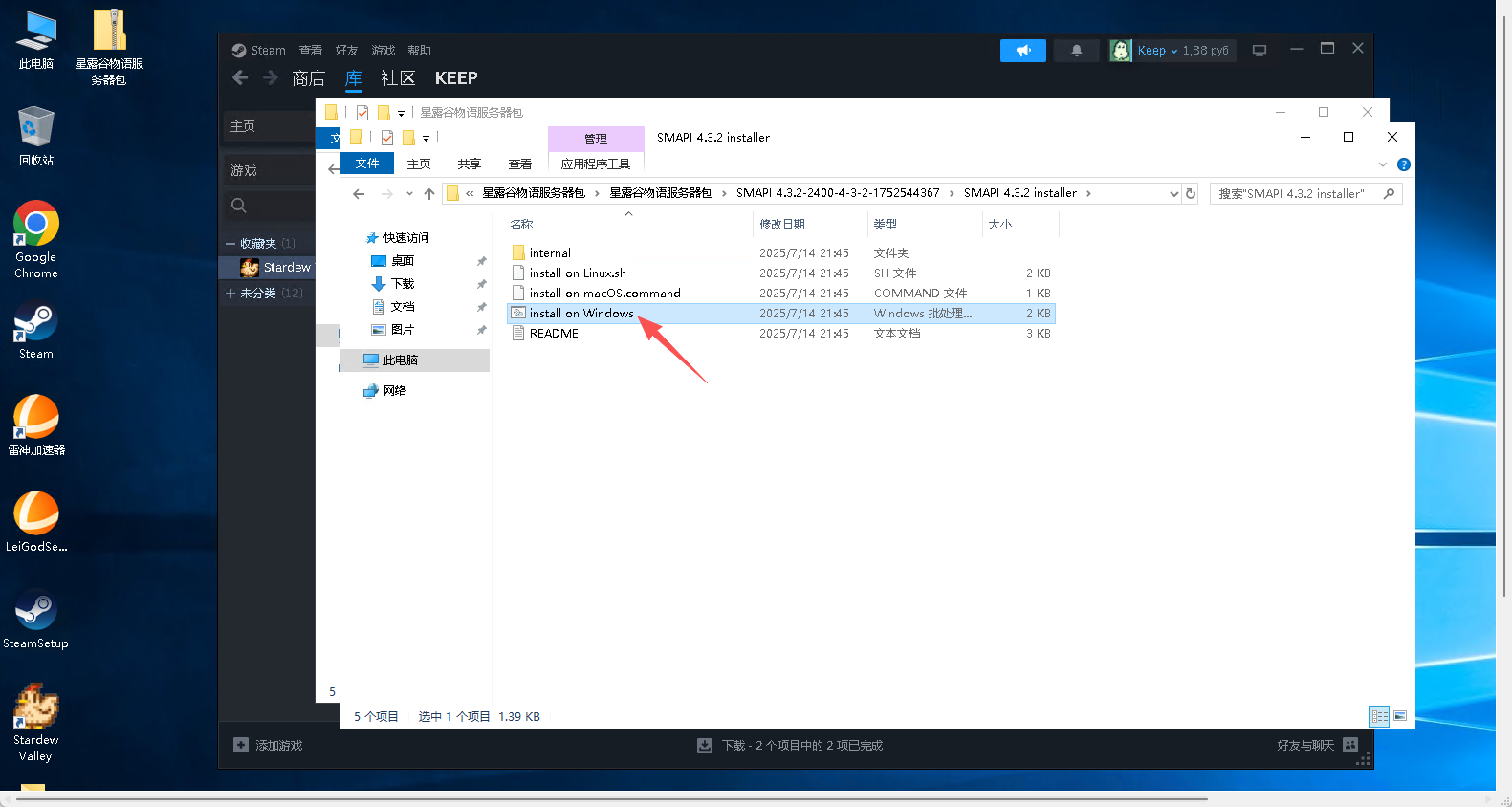 解压完成后再解压里面的SMAPI 4.3.2-2400-4-3-2-1752544367压缩包