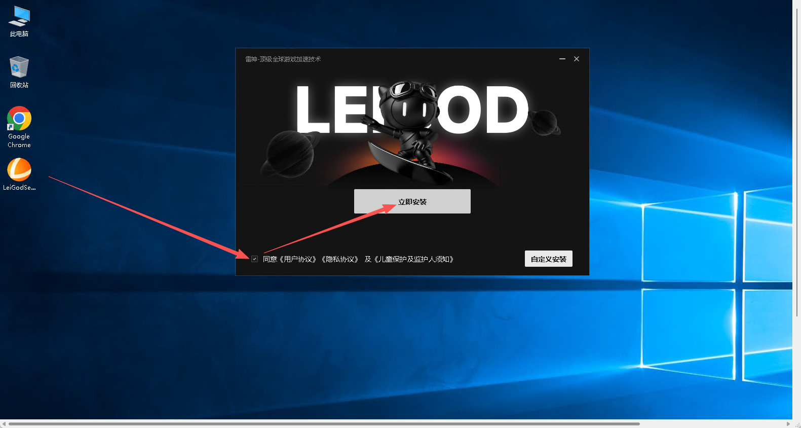 然后运行LeiGodSetup.xxx.exe进行安装雷神加速器(直接安装就好,反正不是自己的电脑)