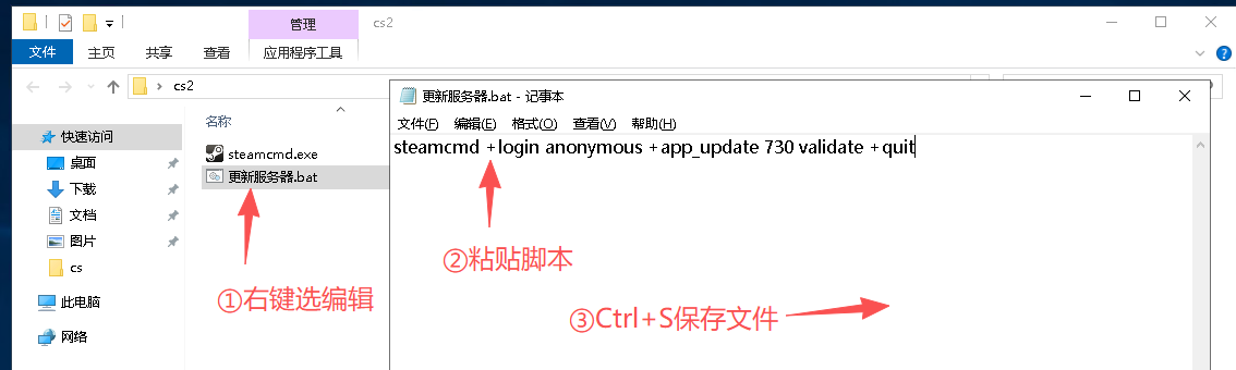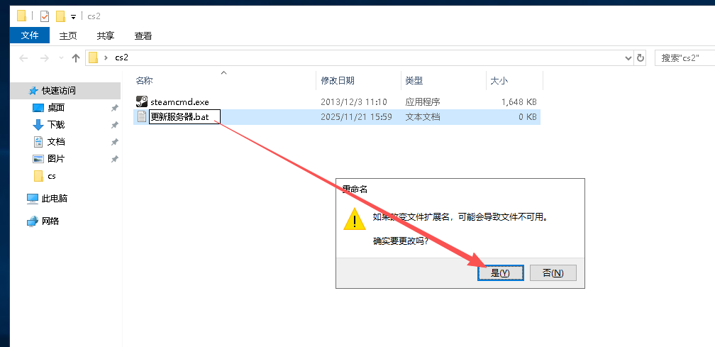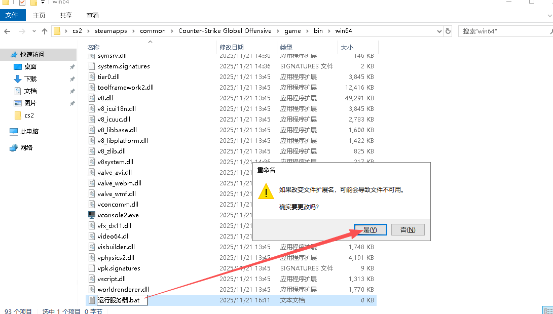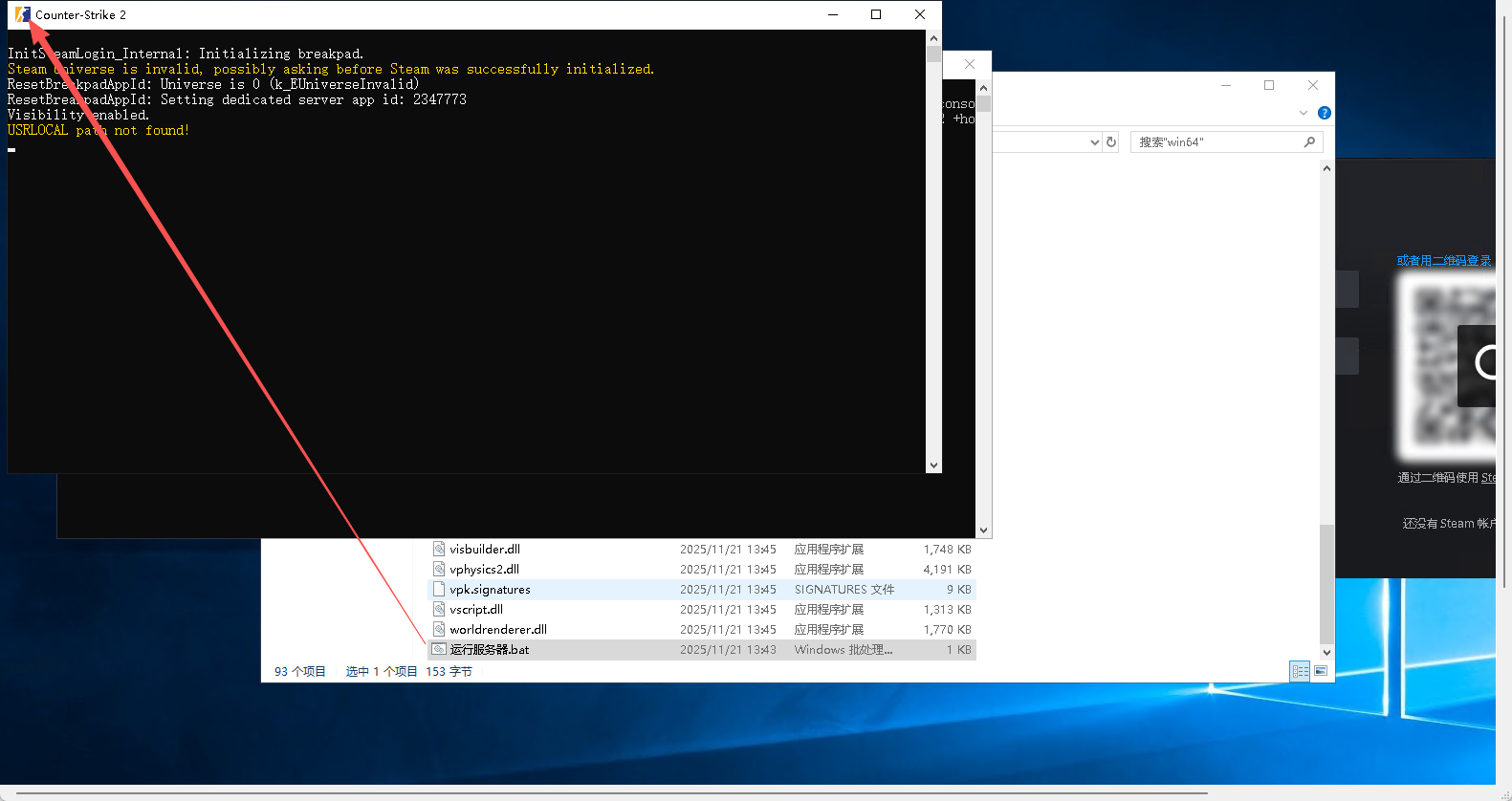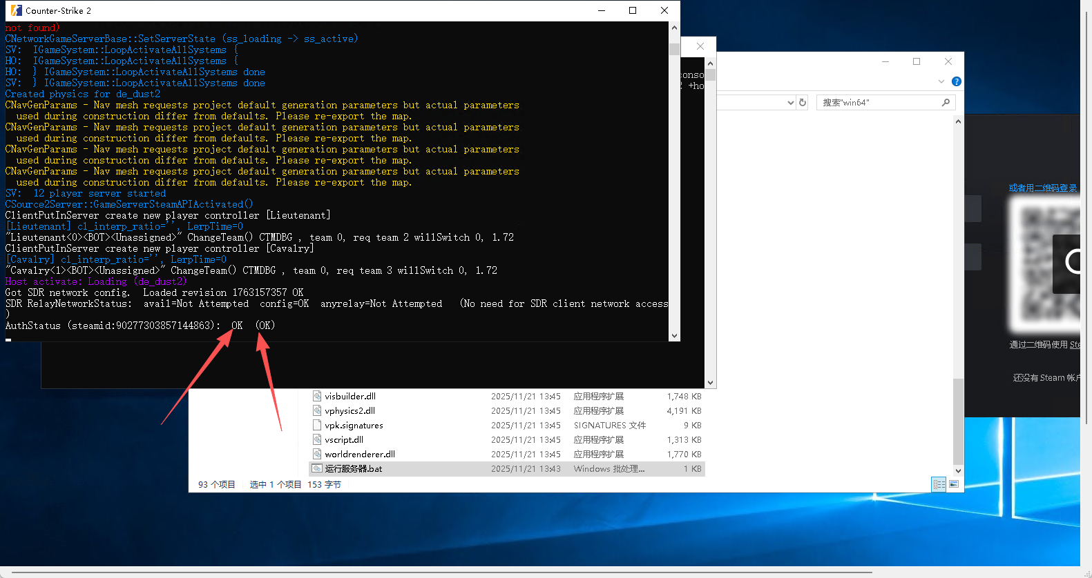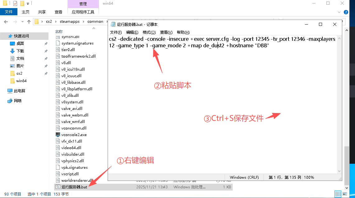 6.5、保存之后,直接双击运行服务器.bat运行CS2游戏服务器