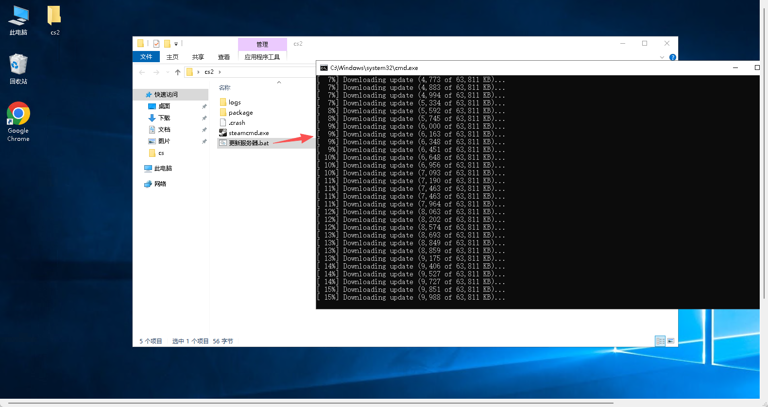 双击更新服务端.bat文件打开,等待他进行服务端安装