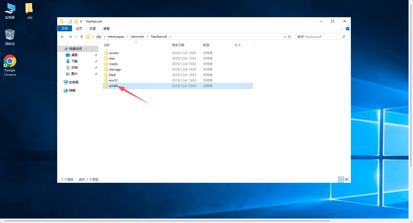 4.2、再打开【Starbound】文件夹内的【win64文件夹】