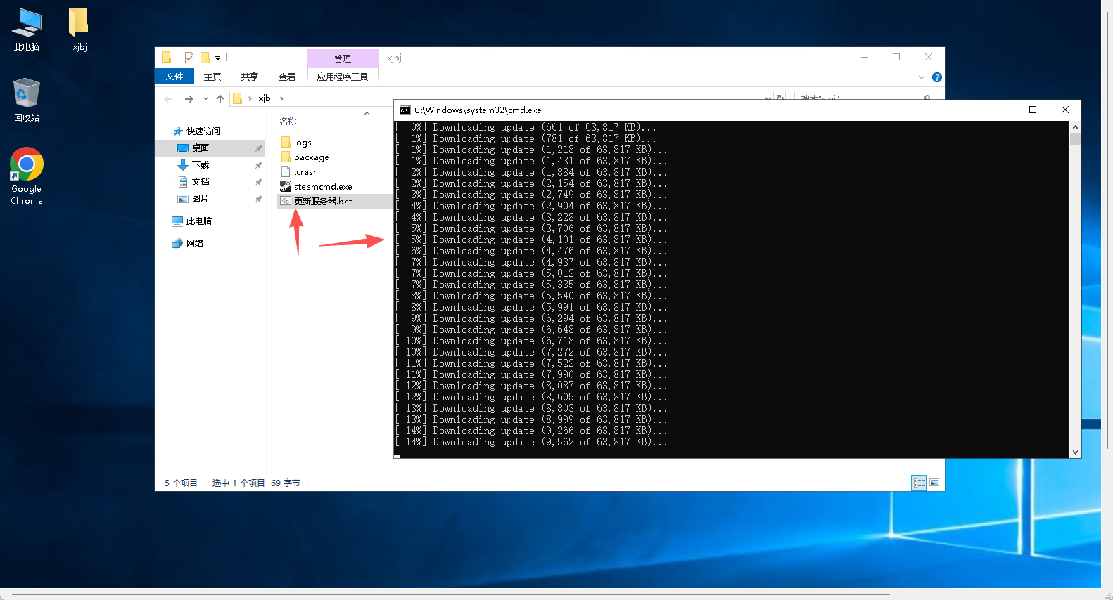 3.6、保存文件后,双击更新服务器.bat进行安装星际边界的服务器