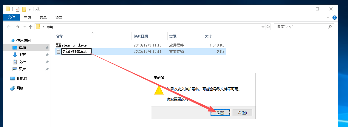 3.4、在xjbj文件夹内创建一个文本文件,将名字新建文本文档.txt更改为更新服务器.bat