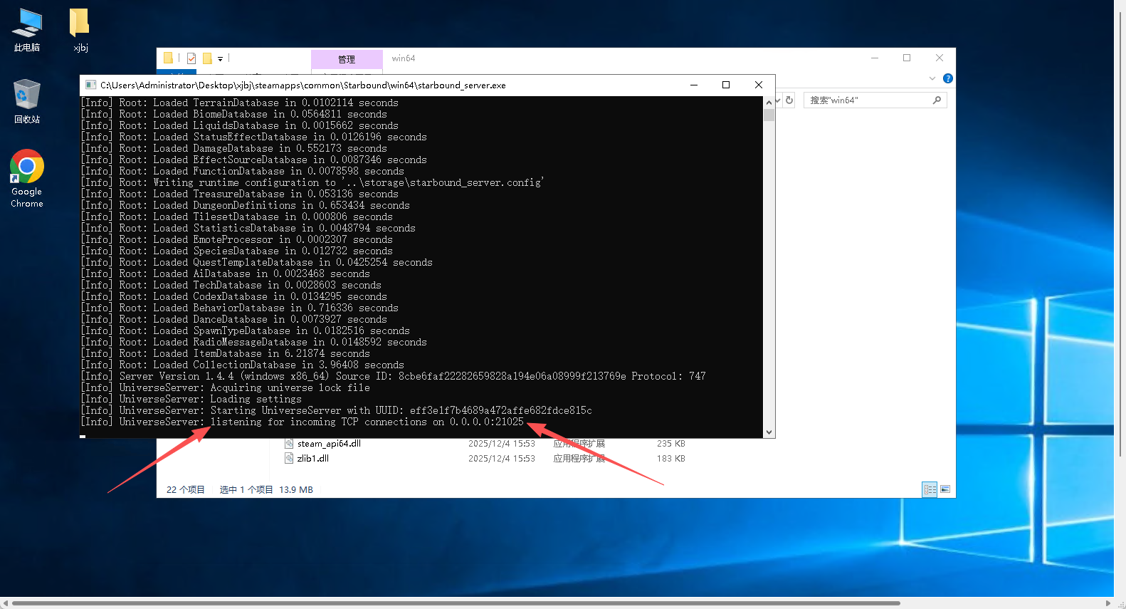 4.4、双击【starbound_server.exe】文件就可以运行星界边境的专用服务器