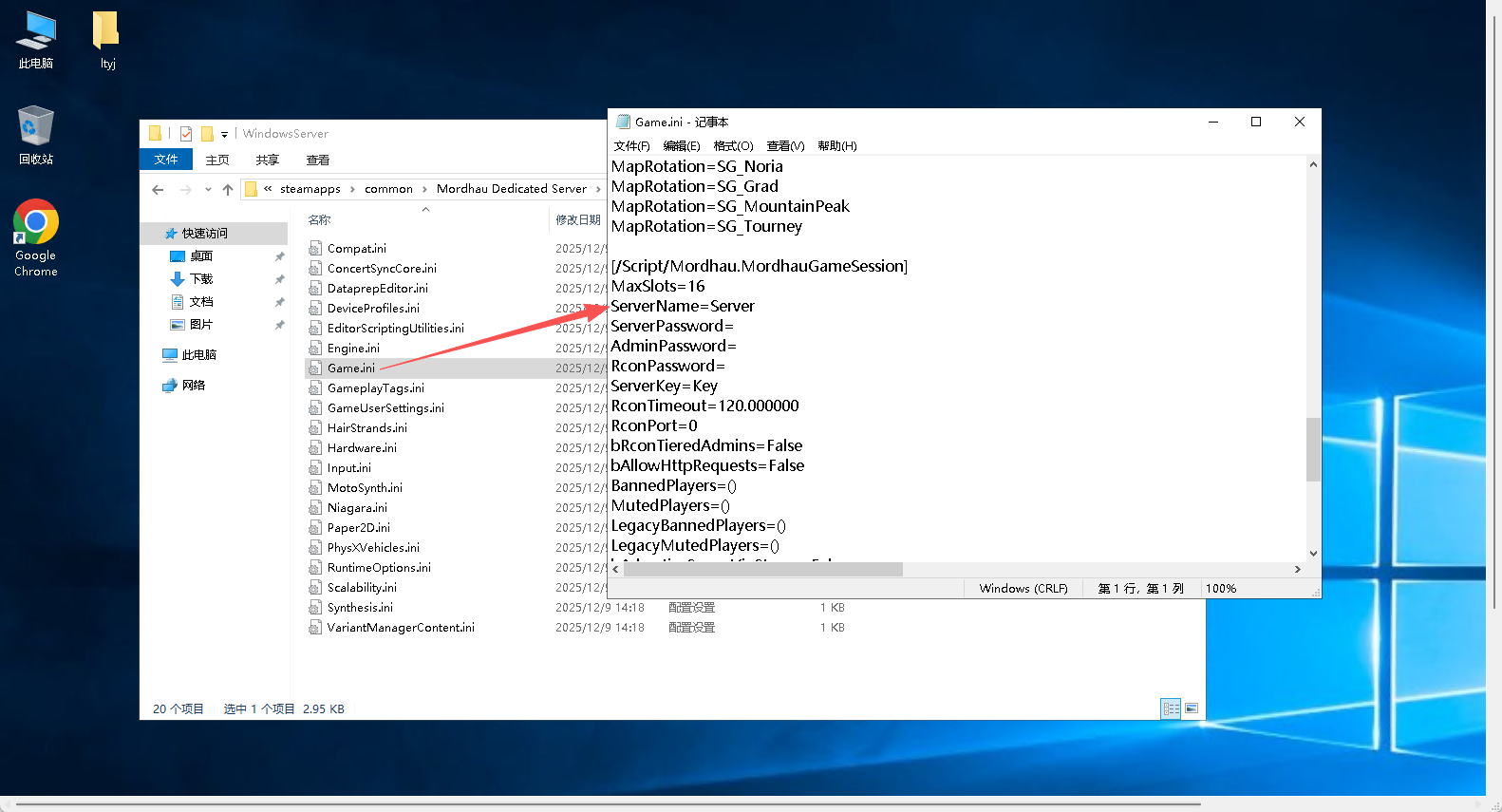 4.9、在【Game.ini】文件里面找到参数【ServerName】
