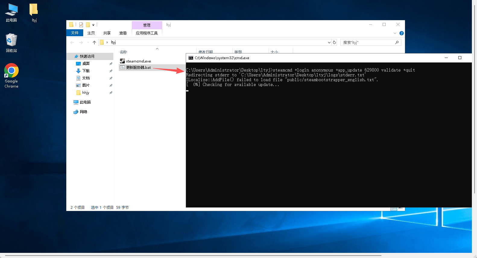 3.4、在ltyj文件夹内创建一个文本文件,将名字新建文本文档.txt更改为更新服务器.bat