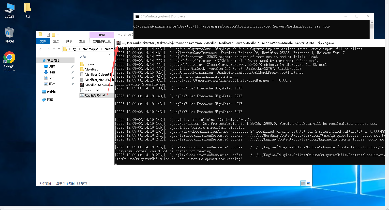 4.2、在【Mordhau Dedicated Server】文件夹内创建一个文本文档