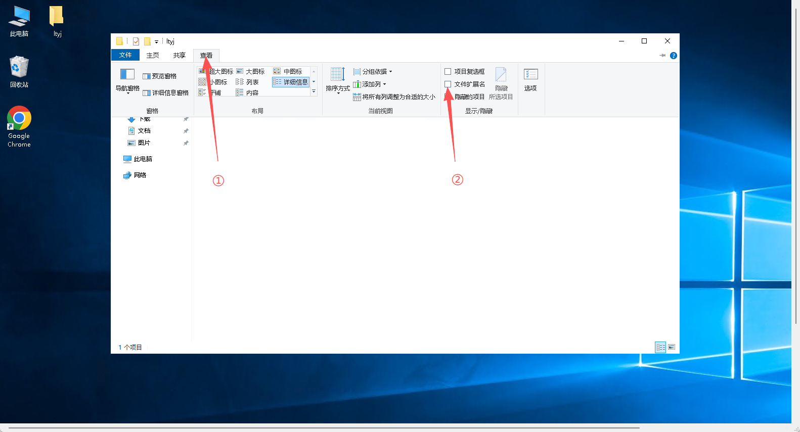 3.3、点击ltyj文件夹上方的查看,然后勾选文件扩展名选项
