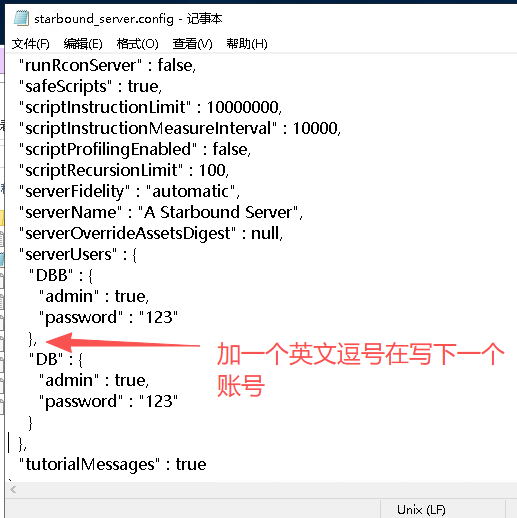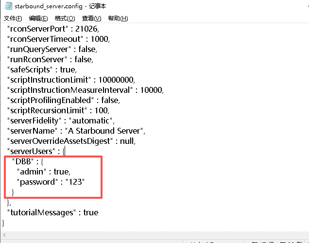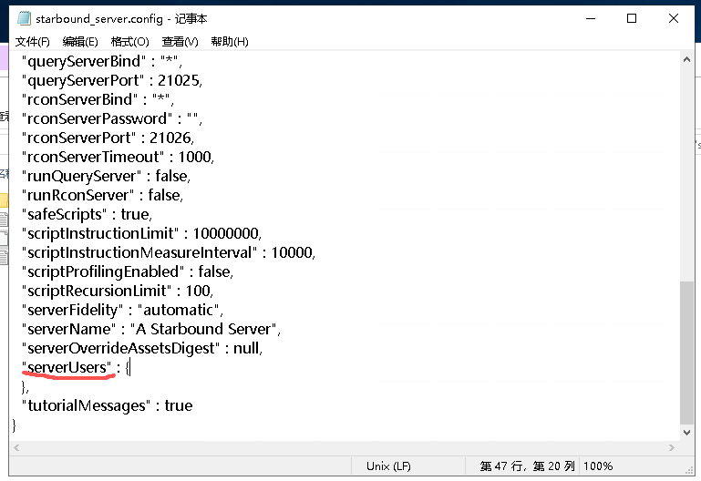 打开【starbound_server.config】文件找到参数【serverUsers】