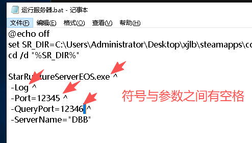 如下图中,四个【^】符号为换行符号,千万不要删除,如果要加其他参数,在最后的参数之前都加上这个【^】符号