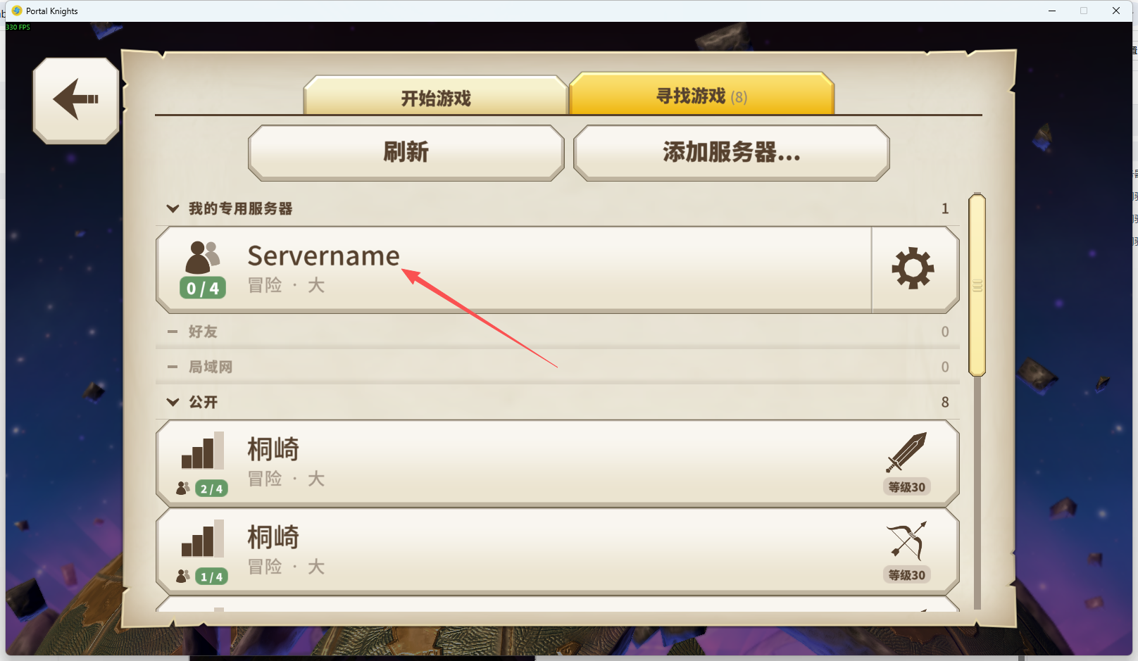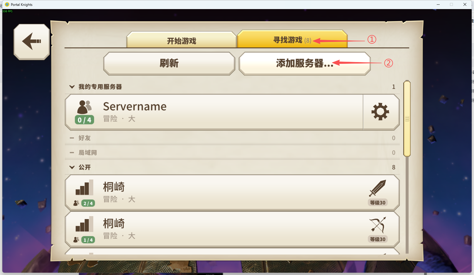 5.2、选择角色后➡点击寻找游戏➡选择添加服务器