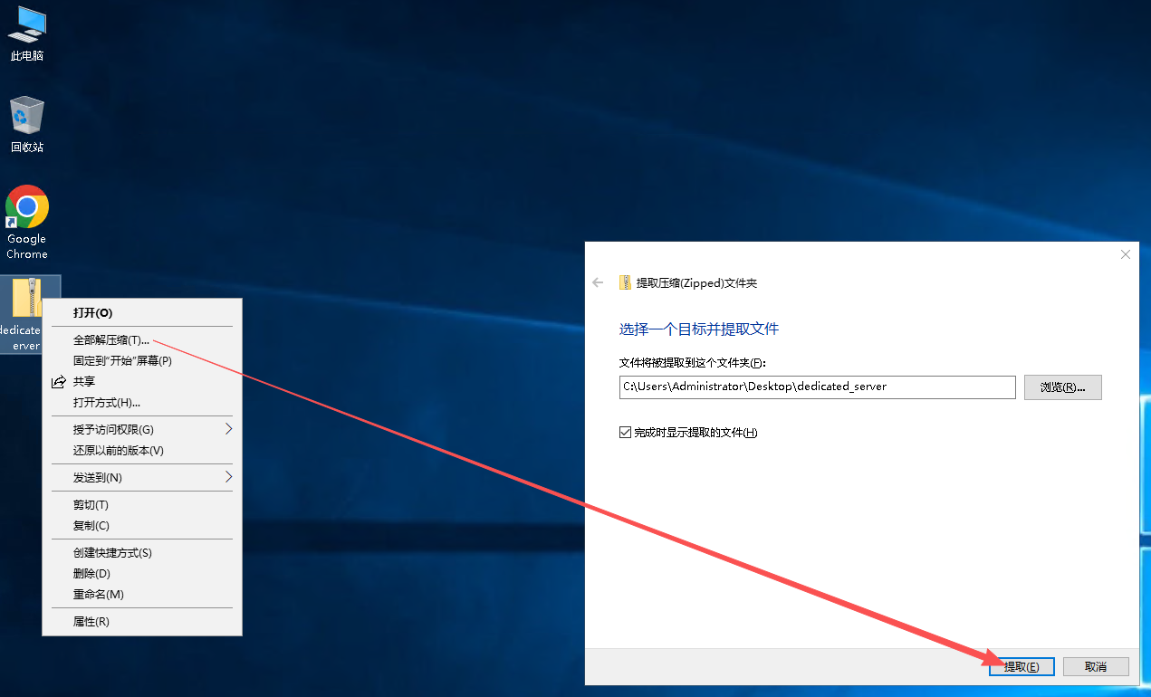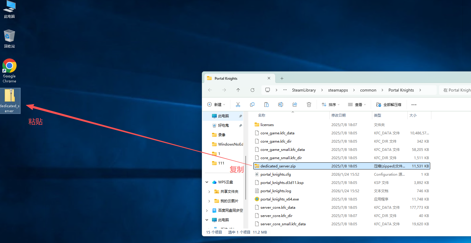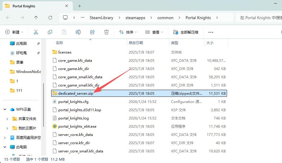 3.2、在弹出来的文件夹中找到【dedicated_server.zip】压缩包,并右键复制它