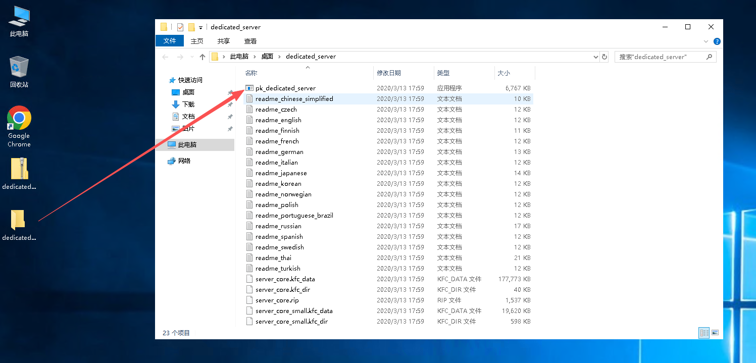 4.1、在解压出来的文件夹中找到【pk_dedicated_server】文件