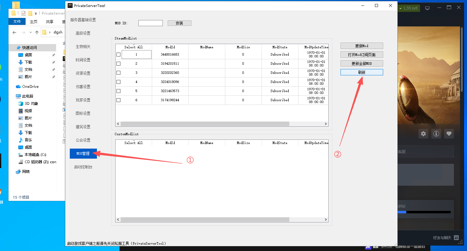下载steam安装包👉【steam官网】下载雷神加速器安装包👉【雷神官网】(可以不是雷神,其他的也可以)给你的云服务器安装上steam 并登录你的帝国神话账号(不需要安装游戏)在订阅模组之前要把官方的工具【PrivateServerTool.exe】关掉然后自行在创意工坊中订阅你想玩的模组然后再去打开工具【PrivateServerTool.exe】在工具中点击MOD管理,点击刷新,你就能看到你的订阅的所有模组接着选择你想要玩的模组,点击左边的小框勾选后,点击上方的安装,就能给服务器安装该模组要记得在启动控制台中点击保存配置再去运行你的服务器就可以了