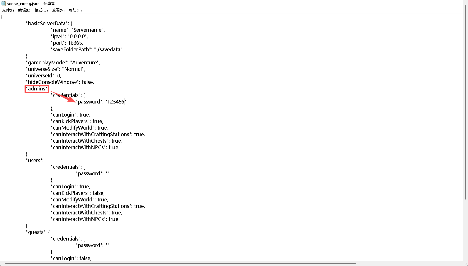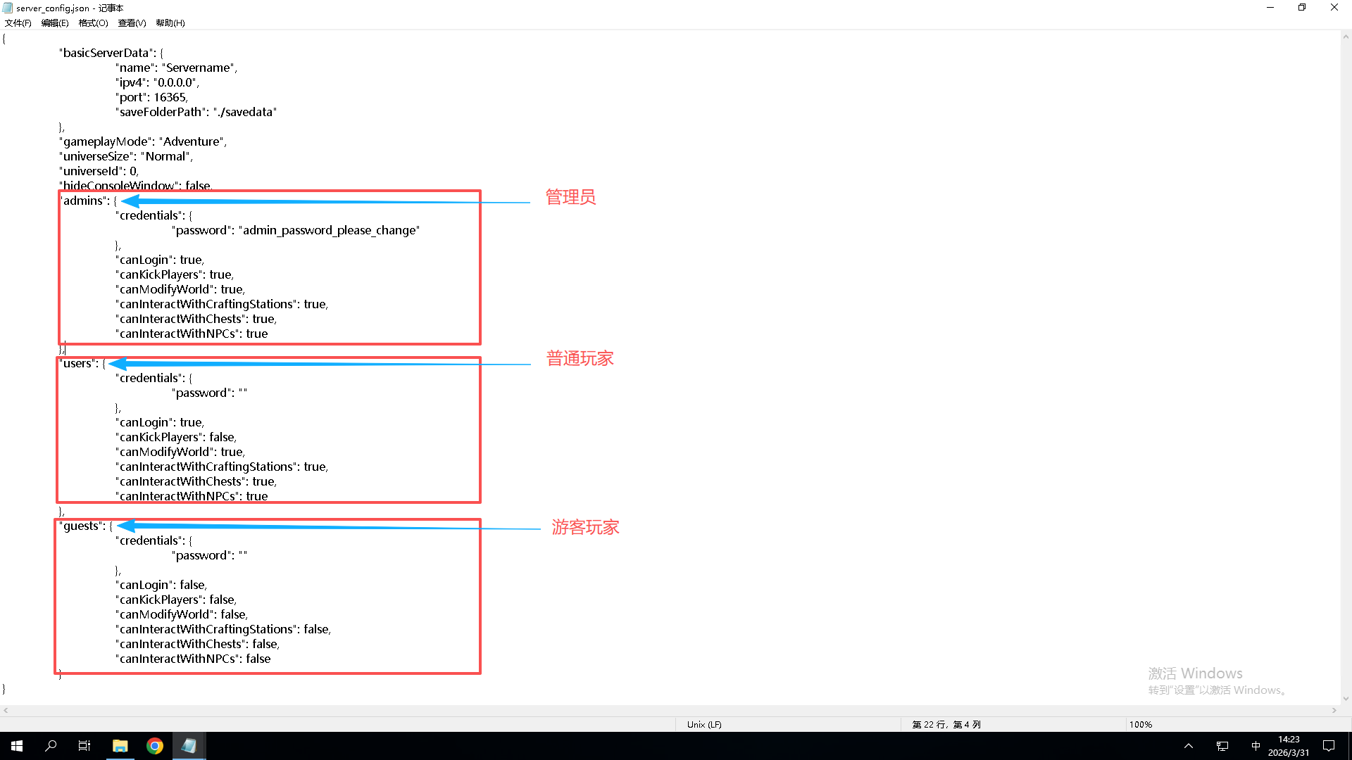 在server_config.json文件下拉会有3处差不多的参数,但是区分3中不同的玩家,见下图👇
