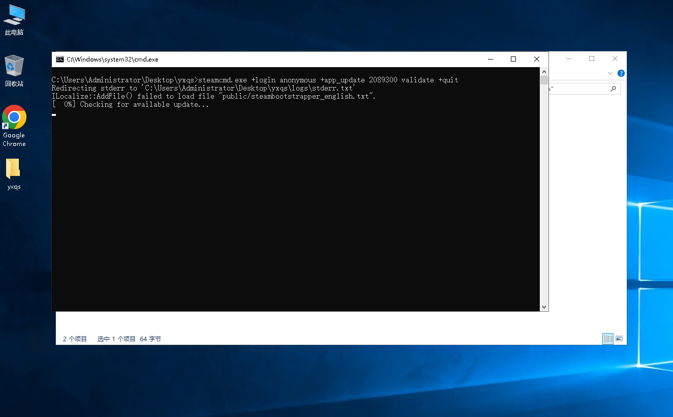steamcmd.exe +login anonymous +app_update 2089300 validate +quit7、双击更新.bat文件打开,等待他进行服务端安装