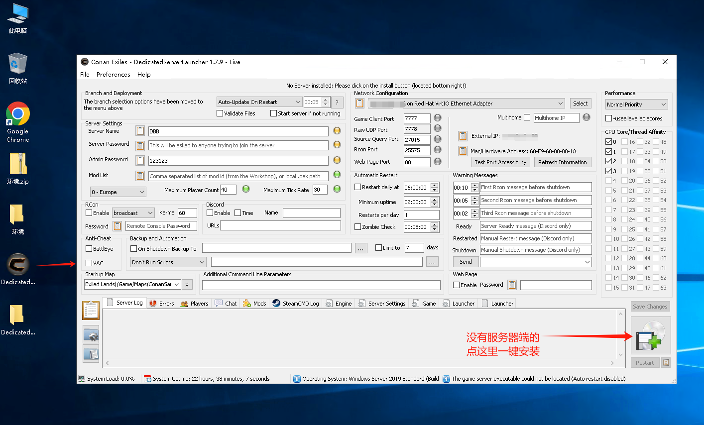 打开这个工具后,桌面就会多出一个Dedicated...的文件夹,这个就是流放者柯南的根目录(之后流放者柯南的服务端就会安装在这个文件夹里)