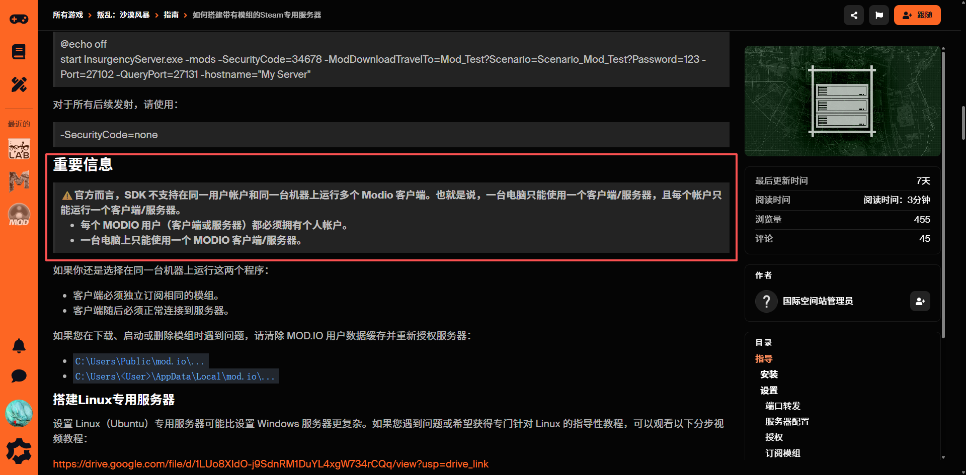 原因2:可能服务器并未成功绑定 Mod.io 账户,重新操作以上步骤尝试