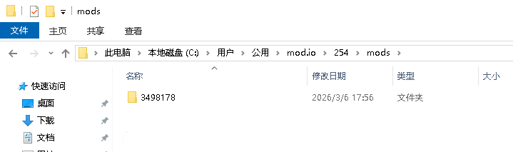 下载的模组会在C盘的这个路径下【C:\Users\Public\mod.io\254\mods】