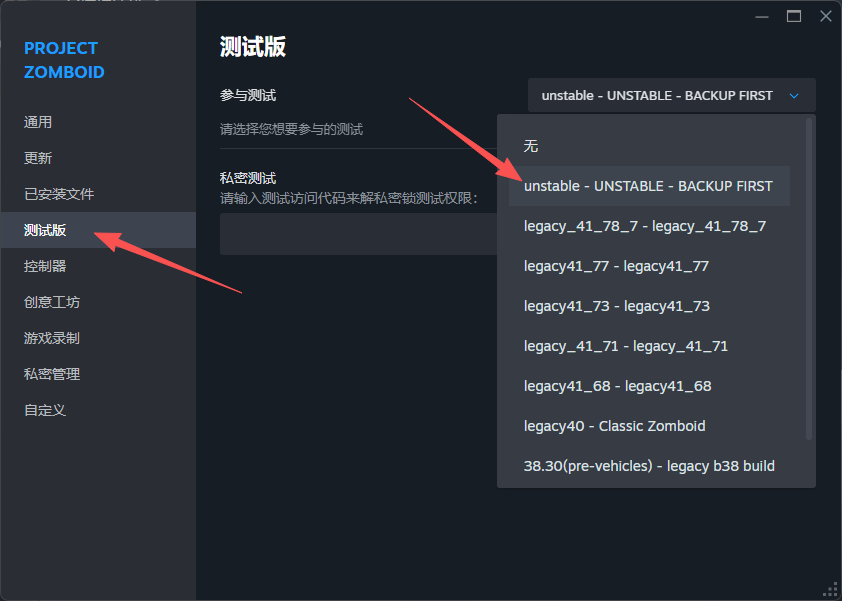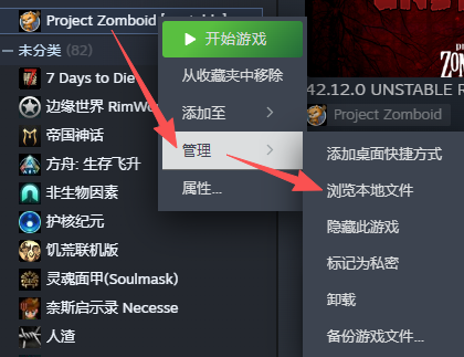 6、将你的游戏根目录路径修改到联机模组的Zomboid Directory处