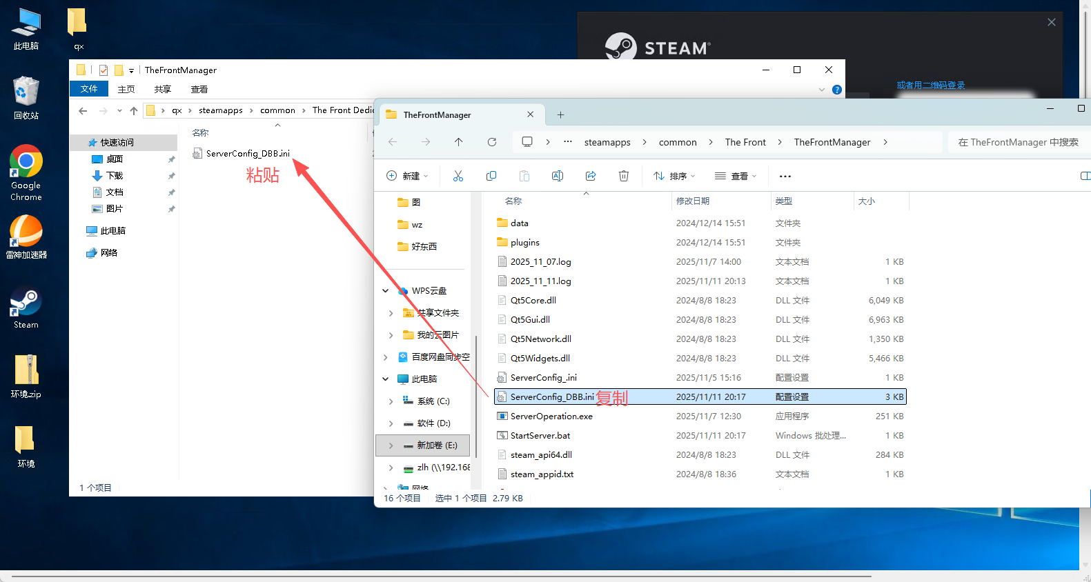点完后就会弹出一个【TheFrontManager】文件夹,在这里面找到【ServerConfig_你设置的服务器配置名.ini】文件