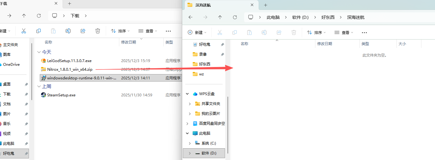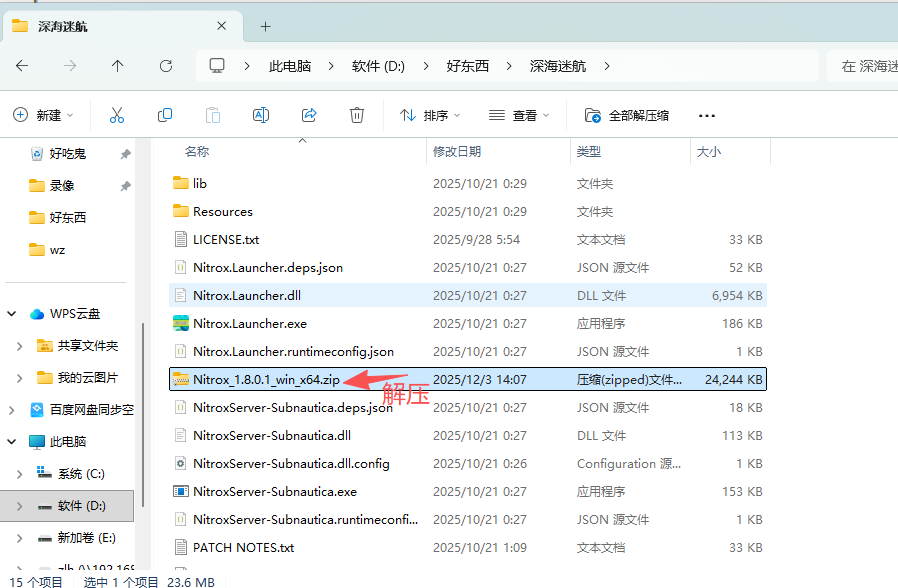接着根据你自己的想法找个位置解压你下载的深海迷航联机模组压缩包