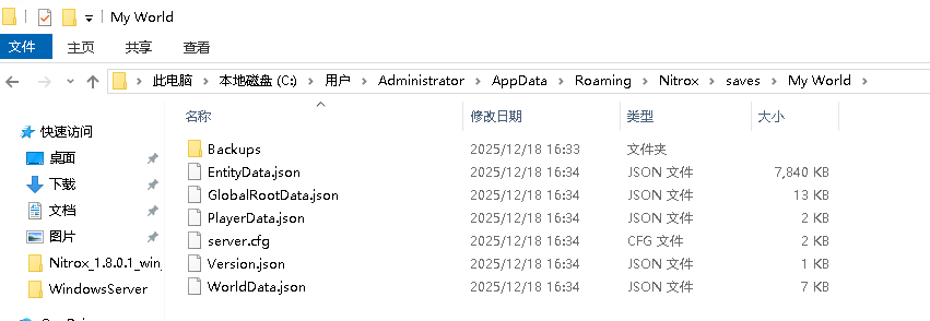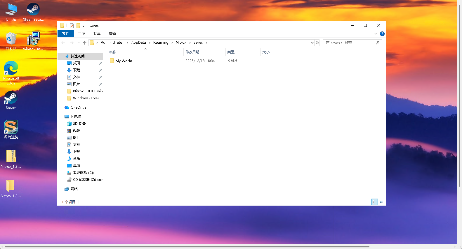 顺序:用户➡Administrator➡AppData➡Roaming➡Nitrox➡saves