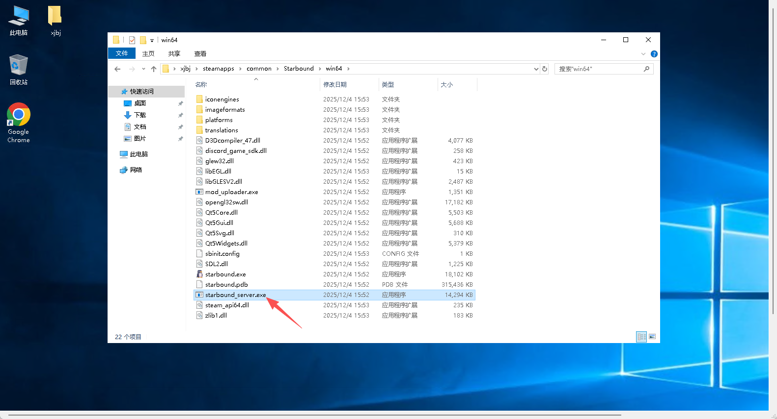 4.3、在【win64文件夹】内会有一个【starbound_server.exe】文件
