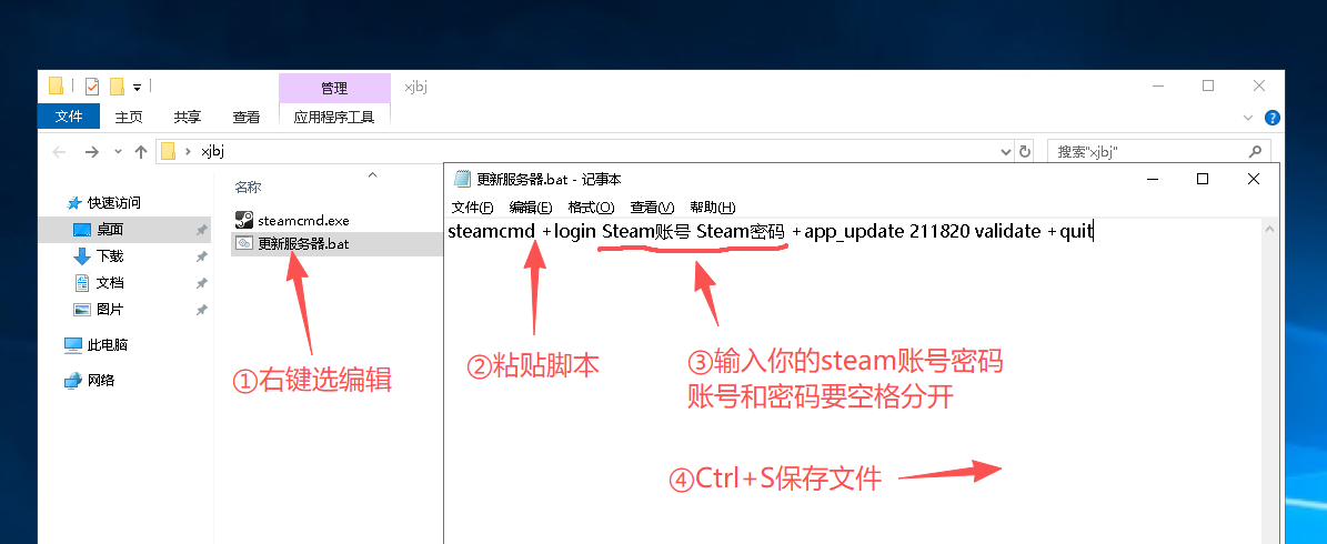 steamcmd +login Steam账号 Steam密码 +app_update 211820 validate +quit