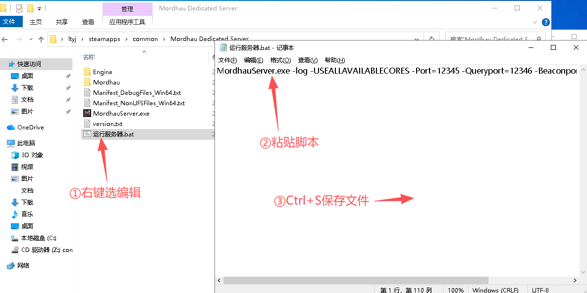4.2、在【Mordhau Dedicated Server】文件夹内创建一个文本文档