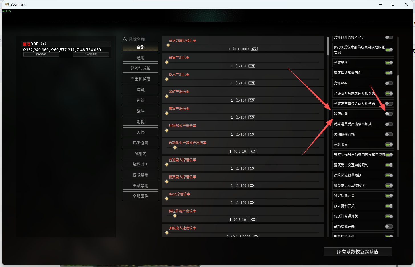 然后连接你的主服务器,在游戏内打开管理员面板👉【灵魂面甲服务器管理员使用教程】👈然后打开系数设置